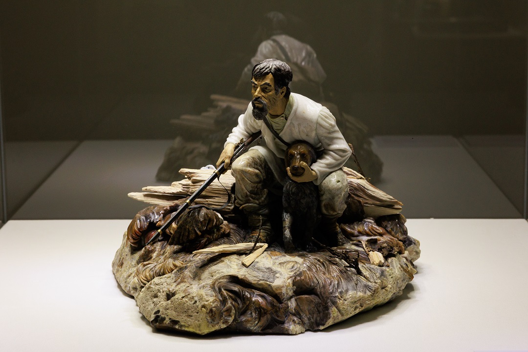 — Большая часть произведений создана в технике объемной мозаики. Этот способ исполнения камнерезных произведений заключается в создании фигур и многофигурных композиций из отдельных фрагментов. Каждая деталь выполнена из тщательно подобранного по цвету и рисунку камня, между собой детали аккуратно подогнаны. Техника требует от исполнителя виртуозного владения формой, умения создавать цельный образ из разнообразных по своим характеристикам материалов, — отмечают кураторы выставки.