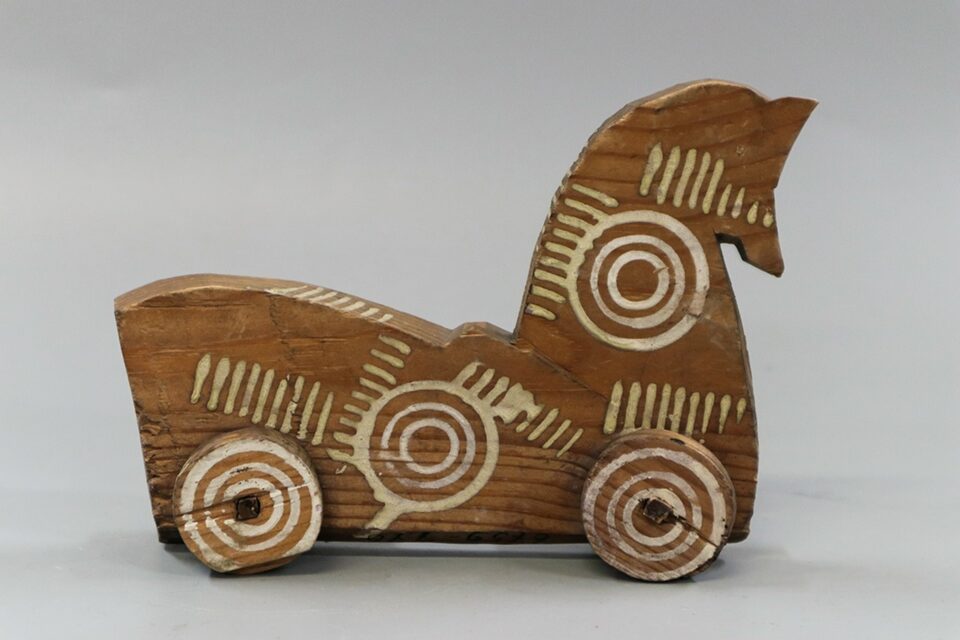 В традиционной детской культуре лошадка была одной из основных игрушек и выполняла не только игровую, но и обучающую функцию. Через нее дети знакомились с устройством повседневной жизни, трудовыми процессами и ролью животных в хозяйстве. Игрушечный конь становился участником сюжетов, связанных с поездками, работой в поле, уходом за скотом и воображаемыми состязаниями. В экспозиции можно увидеть, как этот образ по-разному воплощался у русских, украинцев, белорусов, народов Поволжья, Сибири, Средней Азии, Кавказа, Северо-Запада и Прибалтики. Конь выступал спутником человека, помощником в труде и важным персонажем обрядовой и игровой культуры.