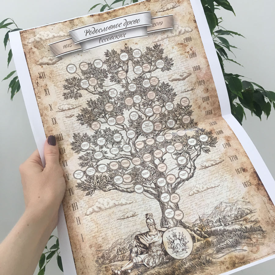 Эта услуга доступна заказчикам родословной «под ключ». В семейную родословную книгу войдут все фотографии, найденные в музейных коллекциях; фото населенных пунктов, где жили предки; фото рода, личных вещей; данные, которые удастся обнаружить в ходе экспедиций к месту жительства предков. Также в книгу включают исторические и этнографические сведения о жизни предков, анализ происхождения фамилий и главных имен рода, информацию о том, как сказались на жизни предков те или иные исторические события: репрессии, раскулачивание, участие в войне и т. д. Плюс ко всему книгу дополнят воспоминания о предках, фрагменты интервью с родными, карта переселения предков и родословное древо, оформленное фотохудожником.