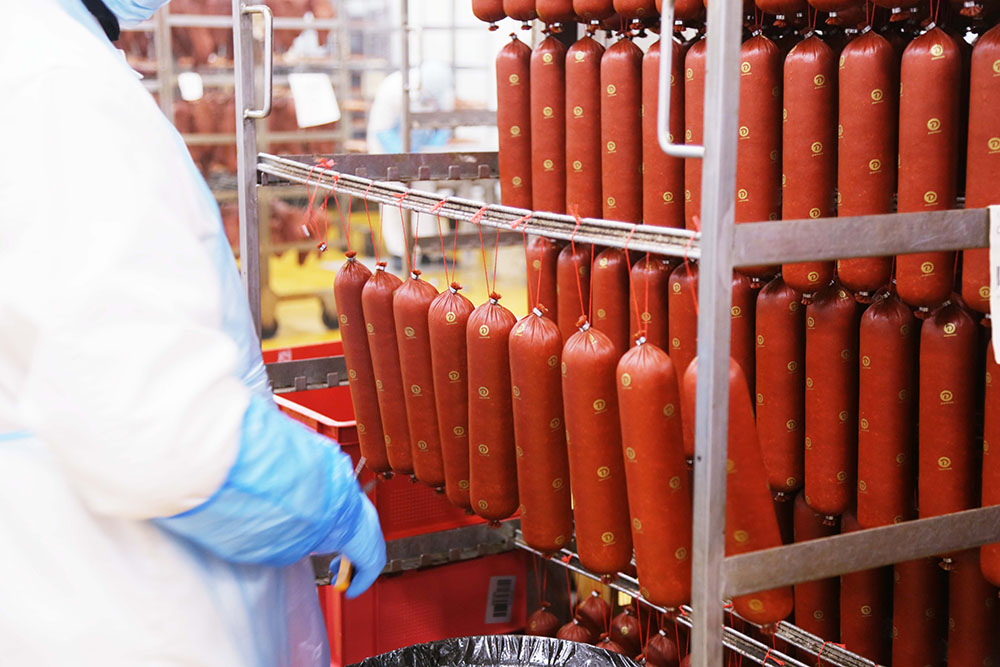 Созревшую колбасу отправляют сушиться, а затем она проходит микробиологический и физико-химический контроль. Плюс дополнительная опция: сырокопченую колбасу проверяют металлодетектором, который настолько чувствителен, что улавливает частицы размером меньше миллиметра.
