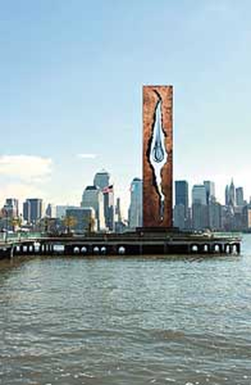 Счастливая идея подарить американцам что-то монументальное появилась у Зураба Церетели вскоре после трагедии 11 сентября. Свой проект он предложил городским властям Джерси-Сити в 2002 году, и отцы города с энтузиазмом приняли его. Мемориал в честь жертв теракта против места, где стояли башни Всемирного торгового центра, будет представлять собой гранитный прямоугольник высотой с 10-этажный дом и с разломом посередине. В разломе будет свисать 12-метровая «слеза» из никелированного металла весом почти в четыре тонны. Внутри нее будет находиться специальный холодильник, вызывающий конденсат на поверхности «слезы», что создаст впечатление, будто памятник постоянно «плачет». А на основании сооружения высекут имена всех погибших в Нью-Йорке 11 сентября.