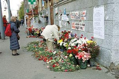 В воскресенье с самого утра к дому Политковской на улице Лесной начали нести цветы. К середине дня их была уже целая гора...