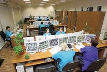 В центре можно наблюдать за жизнью горожан в режиме реального времени. Вот бабушка с огромными сумками наперевес пытается открыть дверь подъезда, вот у небольшого магазинчика разгружают машину со свежим хлебом... А вот и неприятности: на одной из оживленных магистралей города произошла крупная авария, оператор тут же сообщает об этом на пульт единой службы спасения.