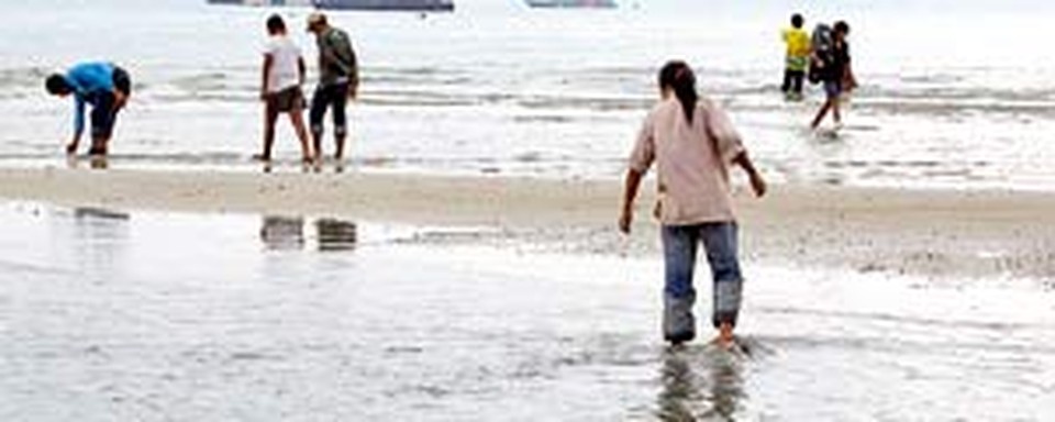 По просьбе нашего спецкора Николая Варсегова туристы и тайцы ищут после отлива пистолет.