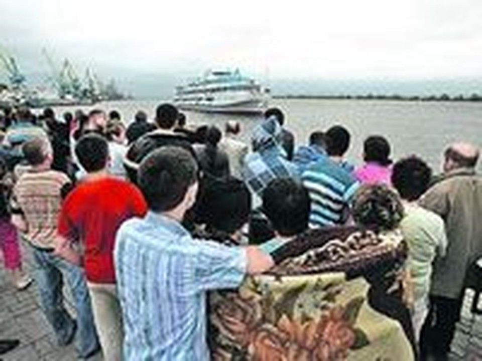 Родственники ждут прибытия теплохода «Арабелла», на котором везут спасенных...