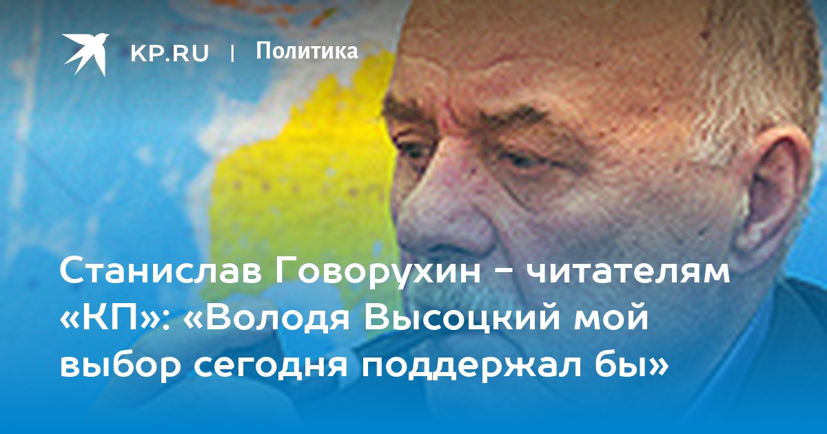 - Знаете, вопрос оскорбительный, но я не оскорблюсь. Потому что я знал Володю Высоцкого лучше, чем тот, кто задает этот вопрос. Уже больше 30 лет прошло, как его нет на свете. Но мысленно я все эти годы с ним советуюсь. И я не думаю, чтобы он пошел за теми, кто хочет для России беды и развала. Уверен: Володя Высоцкий мой выбор сегодня поддержал бы.