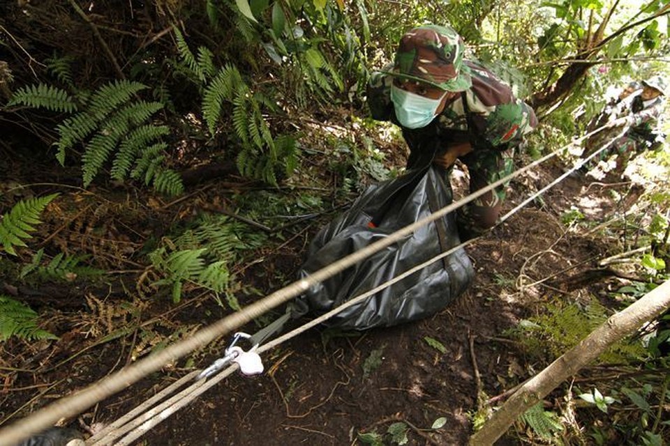 В понедельник спасатели сумели обнаружить место, где лежат бортовые самописцы разбившегося лайнера. По данным спасателей МЧС России, которые помогуют индонизийцам, черные ящики лежат в труднодоступном ущелье у подножия горы Салак. На момент подписания номера, их еще не подняли.