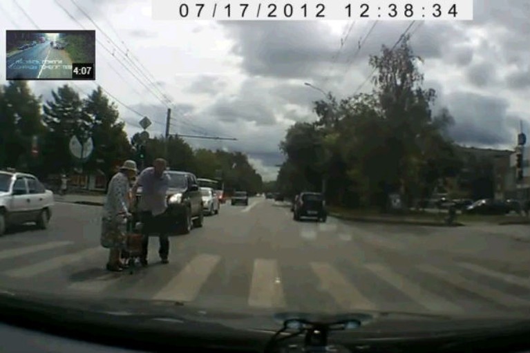 Автор ролика - некто ArkadiYM93. Он просто сделал небольшую нарезку с видеорегистраторов российских автомобилей. И назвал свое творение "Мир не без добрых людей". Собственно, это ролик и доказывает. Все, что мы видим на экране, - это обычные кадры нашей обычной в жизни, в которой, к счастью, есть много места добрым и трогательным поступкам. Вот автомобилист останавливается, чтобы перевести через дорогу бабушку. И никто ему не сигналит, не торопит - все спокойно ждут, когда он сделает свое маленькое, но все же доброе дело. Вот другие водители: они остановились и ждут, когда дорогу перебежит котенок. А вот машины остановились на Кремлевской набережной: мужчины вышли из автомобилей отогнать с дороги утят... А вот парень вытаскивает из сугроба машину незадачливой автомобилистки . И как же трогательно эта девушка бросается на шею своему спасителю, закрепляя благодарность звонким поцелуем в щечку!