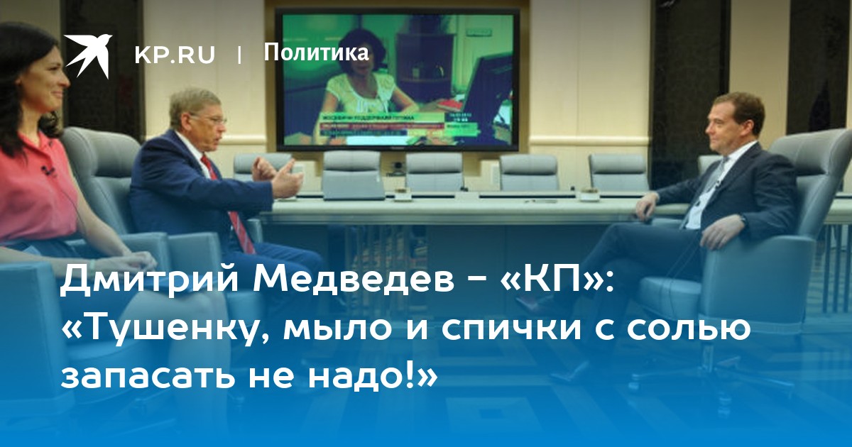 В рамках этого же интервью премьер успокоил россиян: «Такого кризиса, который был в 2008-2009 году, я уверен, нам удастся избежать. Тушенку, мыло и спички с солью запасать не надо!»