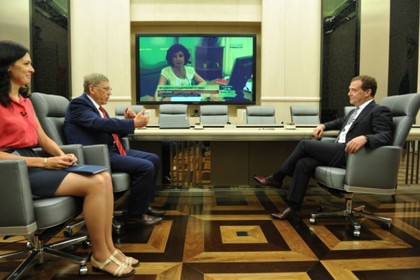 Дмитрий Медведев около двух часов отвечал на вопросы главного редактора "КП" Владимира Сунгоркина и корреспондента отдела политики Елены Кривякиной.