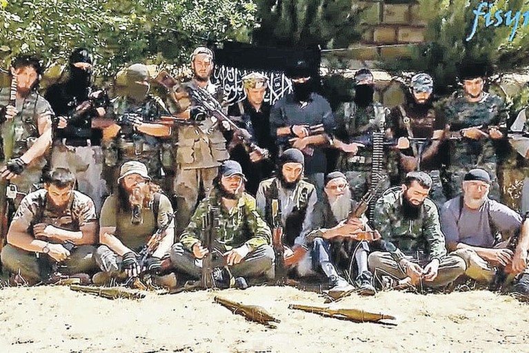 Один из «чеченских джамаатов» в Сирии. Кадр из ролика, рекламирующего джихад.