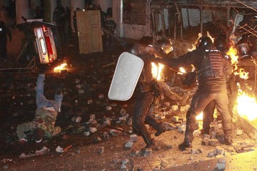 Улица Грушевского в Киеве стала напоминать военный плацдарм, а протест перерос в рукопашную схватку