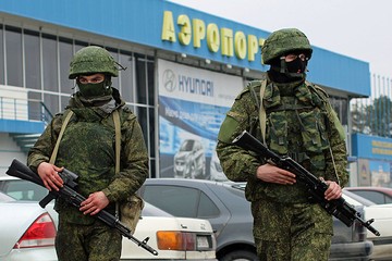 Военнослужащие в одинаковой форме без опознавательных знаков с автоматами Калашникова, пулеметами и снайперскими винтовками «взяли под охрану» территорию аэропорта. Себя они назвали «Силами самообороны» русскоязычного населения Крыма.