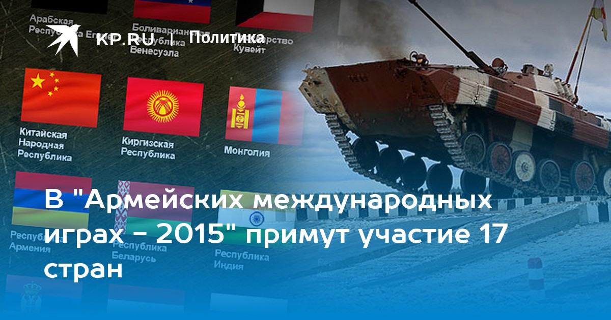 В "Армейских международных играх-2015" примут участие 17 стран, а также шесть стран-наблюдательниц, заявил в четверг начальник главного управления боевой подготовки Вооруженных сил РФ генерал-лейтенант Иван Бувальцев.