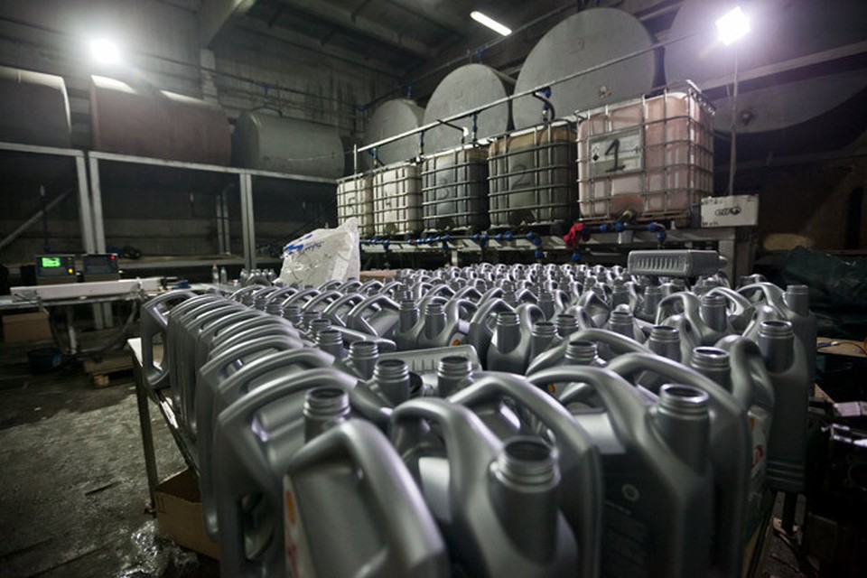 Каждое утро с одного из нескольких нефтеперерабатывающих заводов сюда приезжала многотонная автоцистерна с моторным маслом невысокого класса качества с минимальными потребительскими свойствами. Далее мошенники разливали это масло в поддельные канистры (они поставлялись с двух заводов в Белоруссии), клеили на них подпольно напечатанные в другом регионе России этикетки с логотипами известных фирм и отправляли на продажу.
