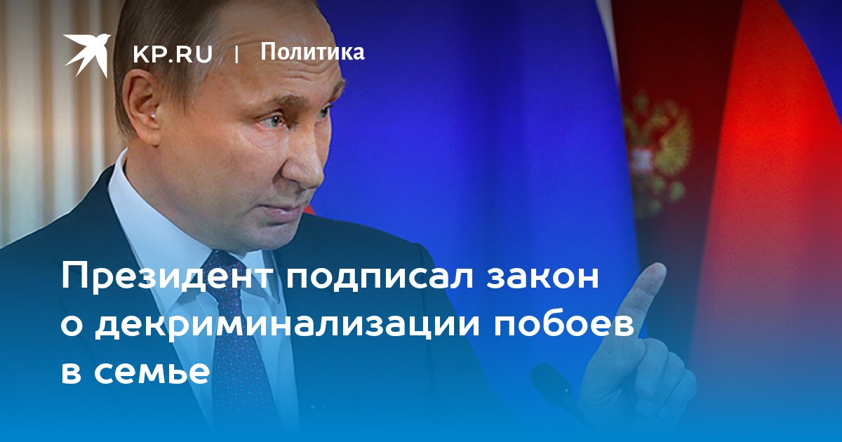 Во вторник, 7 февраля, президент РФ Владимир Путин подписал закон о декриминализации побоев в семье.
