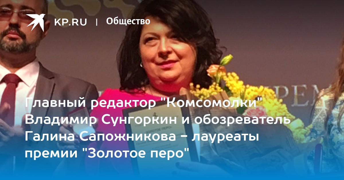 Гордимся, что среди награжденных - сразу два представителя нашей газеты. Главный редактор "Комсомольской правды" Владимир Сунгоркин стал одним из лауреатов в номинации "За верность профессии". А обозреватель Галина Сапожникова получила высшую награду Союза журналистов России за серию публикаций о жизни государств бывшего Советского Союза.