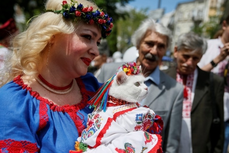 Народ тут, правда, по этому случаю опять вырядился в вышиванки и ходит с флажками Евросоюза. Вчера утром видела тетку лет сорока, сидевшую на бордюре в красивом расшитом платье-вышиванке, вульгарно расставившую ноги. Она пила кофе из пластикового стаканчика и курила тонкую сигаретку. Мадам, судя по всему, была в приподнятом настроении оттого, что наконец уже, как ожидалось, в Европе. Асфальт возле дамы был привычно заплеван окурками.