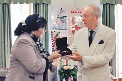 Директор ГМЗ «Ростовский кремль» Наталья Каровская вручает князю Лобанову-Ростовскому ключи от дома Шляковых, в котором планировался (по некоторым противоречащим данным) разместиться музей Лобановых-Ростовских. Фото: Личный архив