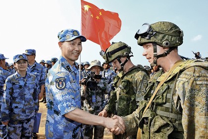 Военные учения в Южно-Китайском море. Замкомандующего ВМФ Китая Ван Хой и российские морпехи.