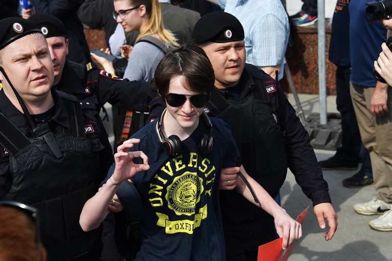 В ходе несогласованной акции задержали и Алексея. Фото: Михаил Почуев/ТАСС
