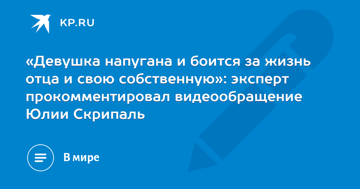 - Как только стало известно о выздоровлении Сергея Скрипаля, стало ясно, что начинается новый акт этого провокационного спектакля, и скоро на авансцене появится или он сам, или Юлия, - рассказал «КП» политолог Игорь Шатров. - Что касается видеоролика, то любой хоть немного разбирающийся в ТВ человек заметит, что девушка записывала свое обращение с помощью телесуфлера, то есть читала ранее написанный текст. Это не криминал, конечно. Момент очень ответственный. И понятно, что Юлия волнуется и старается тщательно выверять каждое слово. Только вот кем написан текст? Ею? Или Ми-6? На мой взгляд, Юлию склоняли к более жестким заявлениям в адрес России, но удалось добиться только отказа от сотрудничества с российскими дипломатами. Видно, что девушка напугана и боится за жизнь отца и свою собственную. Но откуда исходит угроза их жизням? Мне кажется, что от тех, в чьих руках она находится.