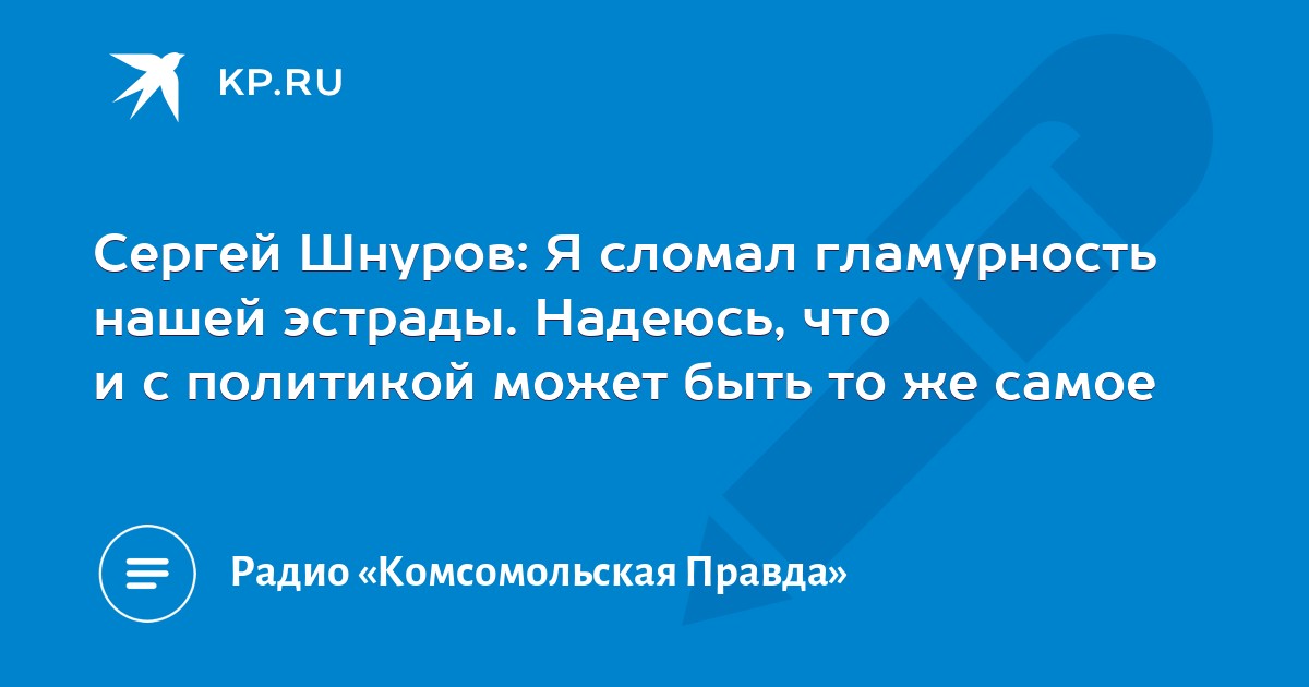 Я сломал гламурность нашей эстрады. Надеюсь, что и с политикой может быть то же самое