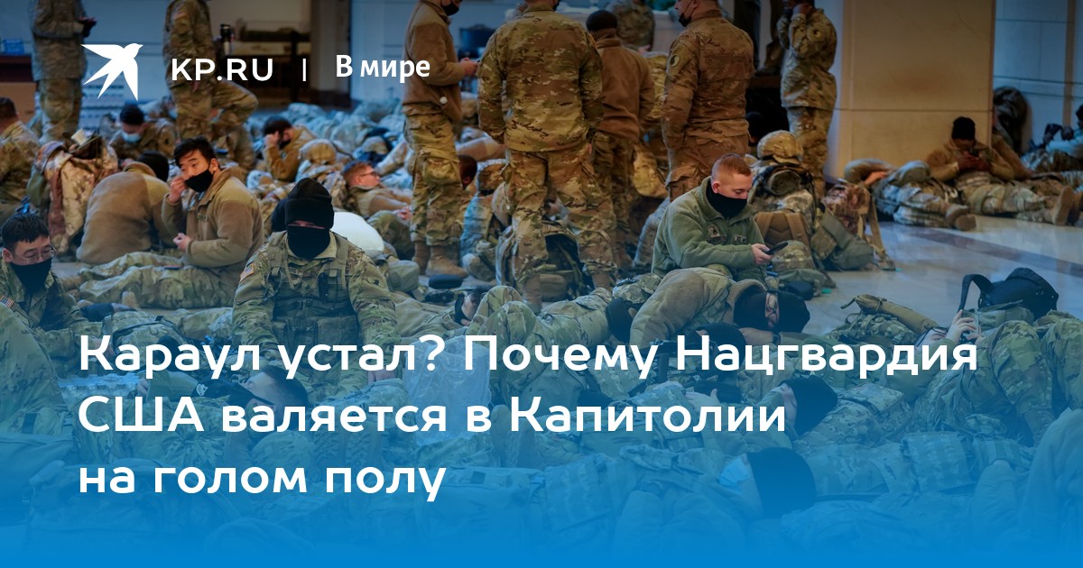 Все наверно уже видели эту трогательную картину. Бойцы Национальной гвардии США вповалку друг на друге валяются на полу Капитолия. Их автоматические винтовки стоят рядом, прислоненные к стене. Со стен на уставшее воинство взирают политики прошлого. Эффектная картинка, ничего не скажешь. Только месседж не очень понятен.