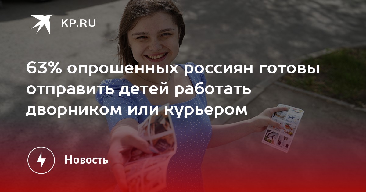 В прошлом году в России рекордно вырос спрос на курьеров и дворников. В связи с этим работодатели чаще начали приглашать на такую работу подростков. И как оказалось, более половины россиян готовы отправить на такие вакансии своих детей, чтобы те узнали цену деньгам и учились с ранних лет зарабатывать самостоятельно. Об этом говорят итоги опроса сайта KP.RU.