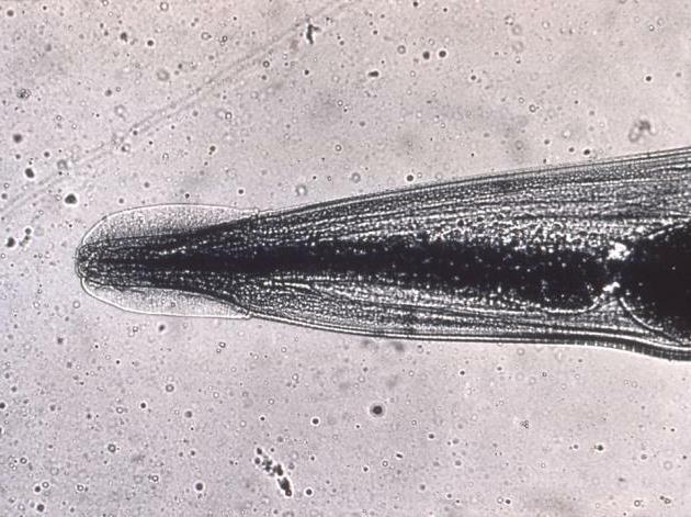 Возбудитель энтеробиоза – мелкий паразитический червь, который относится к классу круглых червей. Взрослый паразит имеет серо-белое тело в форме веретена с заостренными кончиками.