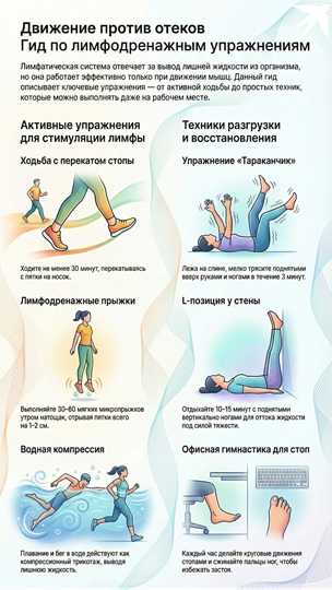 Физическая нагрузка – действенный способ избавления от отеков. Дело в том, что у лимфатической системы, в отличие от кровеносной, нет сердца, которое качало бы жидкость. Движение лимфы происходит только тогда, когда сокращаются мышцы.