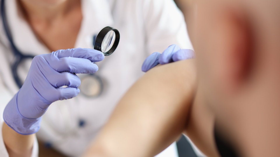 Постановка диагноза начинается с осмотра. Заподозрить КПЛ помогают характерные высыпания красного или фиолетового цвета, с белым рисунком (сеткой Уикхема). Сильный зуд – также характерный признак заболевания.