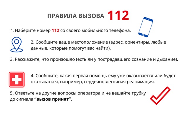 - При отсутствии признаков жизни нужно вызвать 112 и выполнять сердечно-легочную реанимацию.
