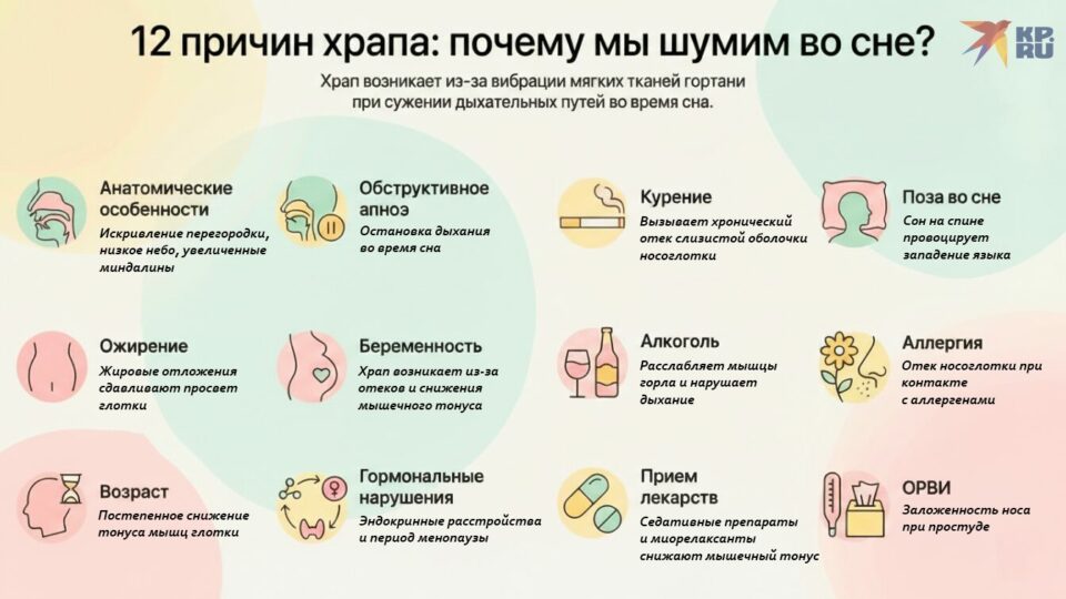 Есть много факторов, по причине которых может возникнуть храп – от врожденных физиологических особенностей до образа жизни. Рассмотрим основные причины храпа у мужчин и женщин.