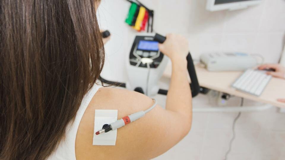 Затем пациент садится на велоэргометр с встроенными датчиками. В области грудной клетки подключают электроды для снятия показаний ЭКГ, на плечо надевается манжета для контроля АД, показаний пульса и сердечного ритма. Пару минут на разминку – и пациент начинает крутить педали.