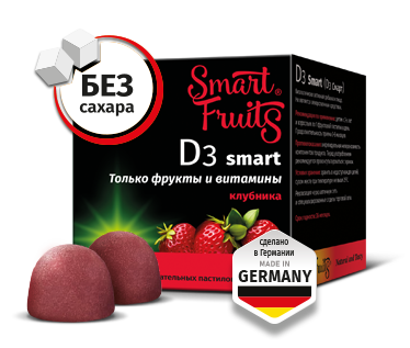 • D3 Smart Fruits с клубникой – для укрепления иммунитета, здоровья сердца и сосудов.