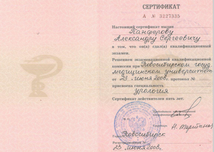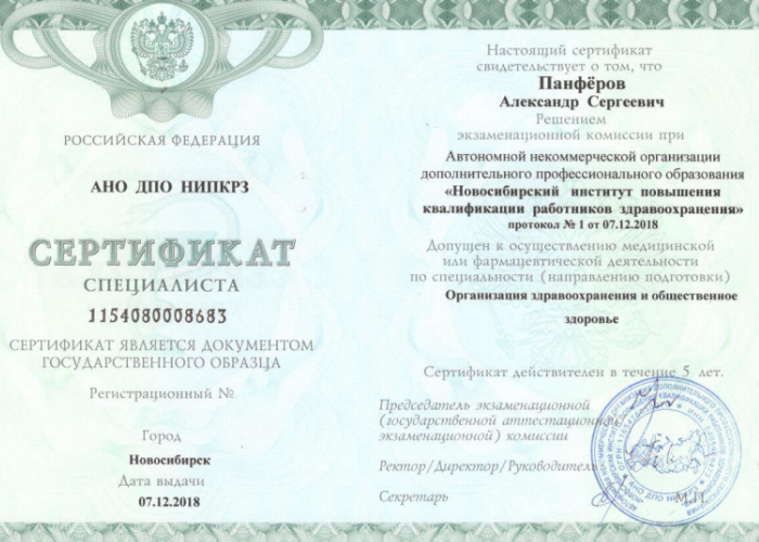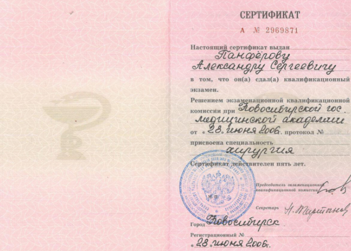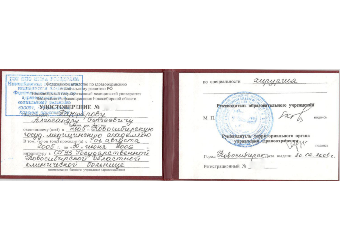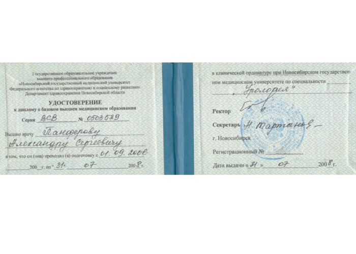 2006 г. - Новосибирский государственный медицинский университет. Ординатура.