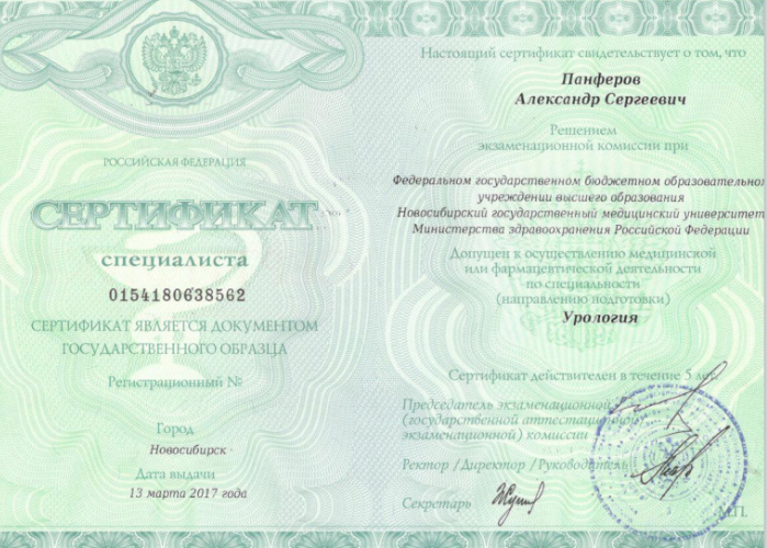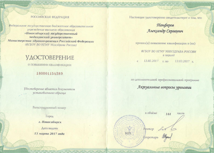 2017 г. - «Реконструктивная хирургия мужских половых органов».