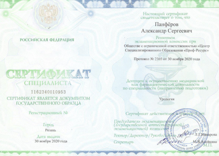 К.м.н., врач-уролог, онколог, руководитель Центра урологии клиники «Медассист» (город Курск). Член Профессиональной ассоциации андрологов России. Член Европейской ассоциации урологов (EAU). Член Российского общества урологов. Член Российского общества онкоурологов.