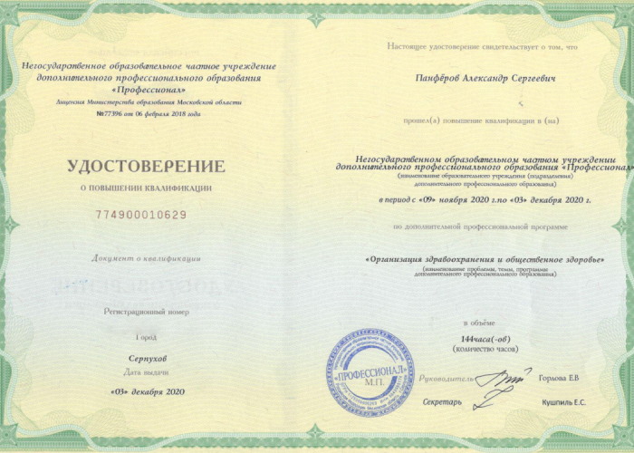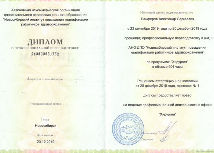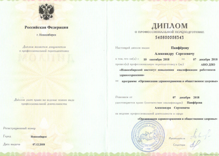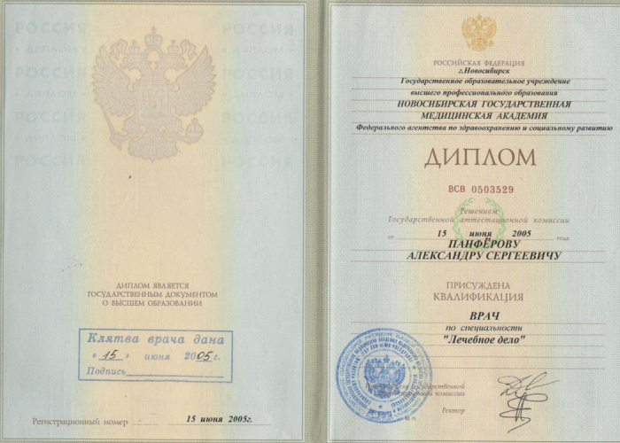 2005 г. - Новосибирский государственный медицинский университет (лечебное дело). Базовое образование.