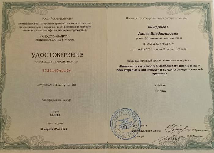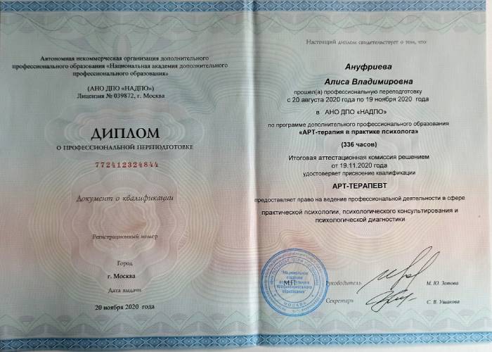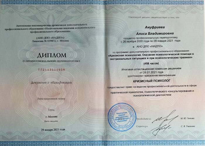 Клинический и кризисный психолог, арт-терапевт, психосоматолог.