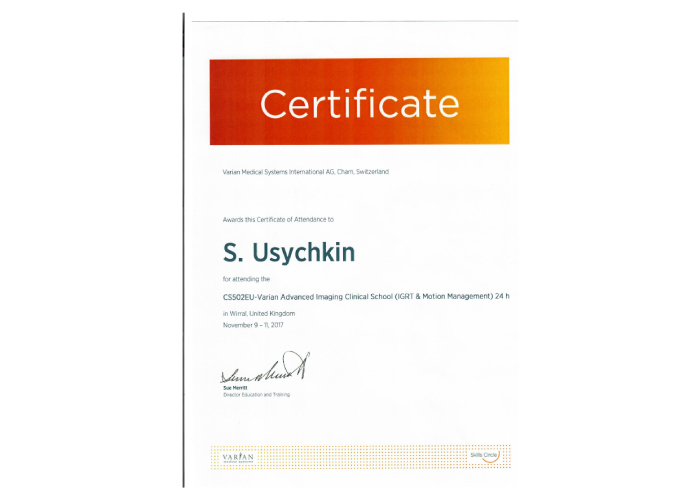 2020 г. – повышение квалификации по специальности «Радиотерапия» на кафедре АНО ДПО «СИНМО», Новосибирск, 144 часа.