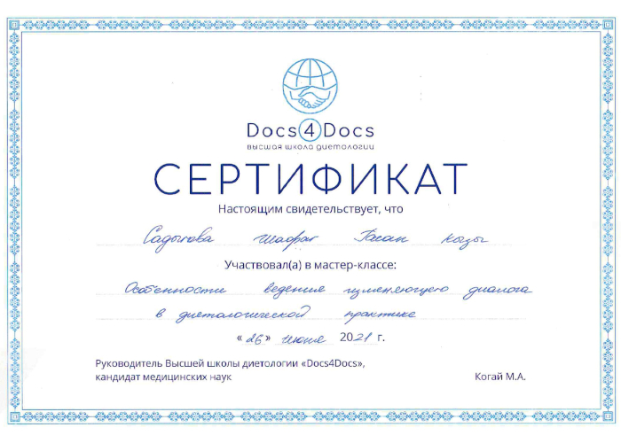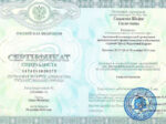 2019 г. - Международная академия экспертизы и оценки (диетология).