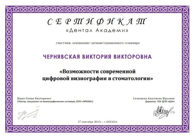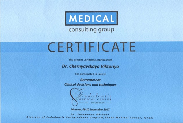 2014 г. — профессиональная переподготовка по специальности «Стоматология терапевтическая»