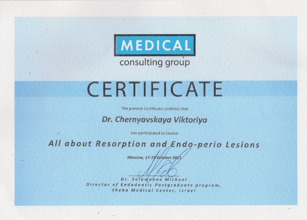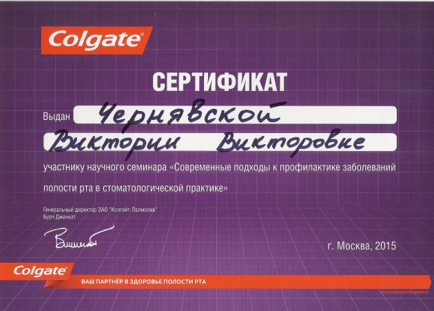2015 г. — профессиональная переподготовка по специальности «Стоматология ортопедическая»