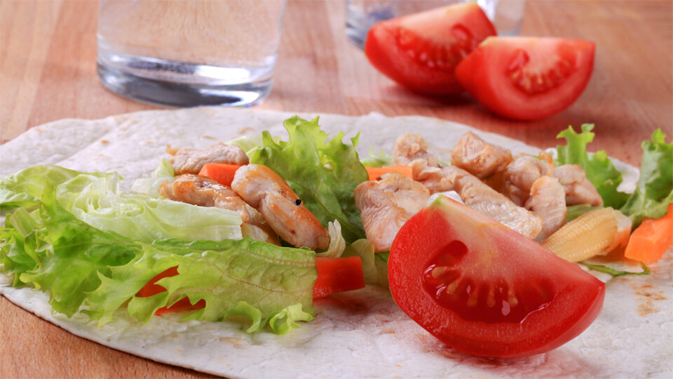 Завтрак: омлет из трех яиц с зеленью, небольшая порция фруктового салата;