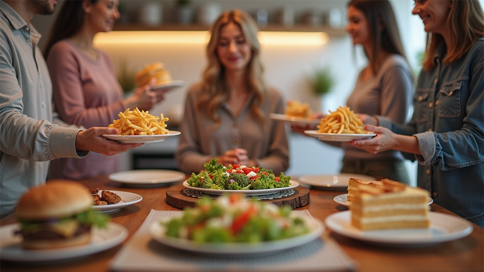 На появление лишнего веса и ожирение в большой степени влияют социальные факторы – в том числе окружение и семейные традиции. Если в семье принято устраивать обильные застолья, готовить пищу из высококалорийных, жирных продуктов, то сбросить вес будет гораздо сложнее1. Тяжело устоять перед соблазном, когда все остальные члены семьи питаются так, а сам худеющий – иначе.