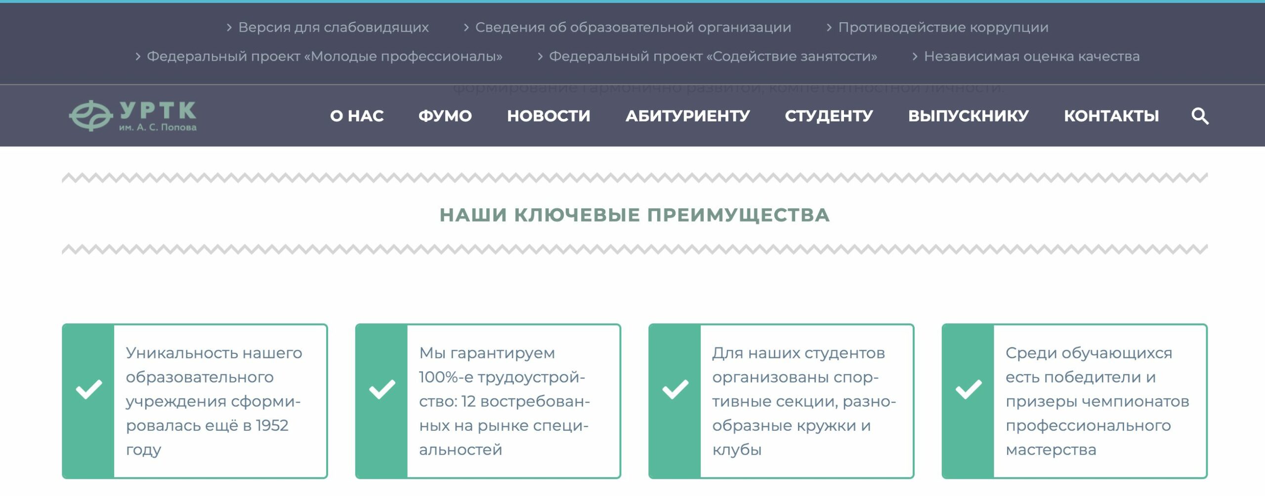 Уральский радиотехнический колледж имени А. С. Попова учит студентов с 1952 года. В последние годы информационные технологии стали основным направлением подготовки наряду с радиотехникой и электроникой. Для будущих IT-специалистов есть несколько интересных программ. Например, выучившись по специальности «Компьютерные системы и комплексы», вы станете дипломированным специалистом по компьютерным системам. А выбрав специальность «Информационные системы и программирование», получите итоговый документ государственного образца, в котором будет указана квалификация программиста.