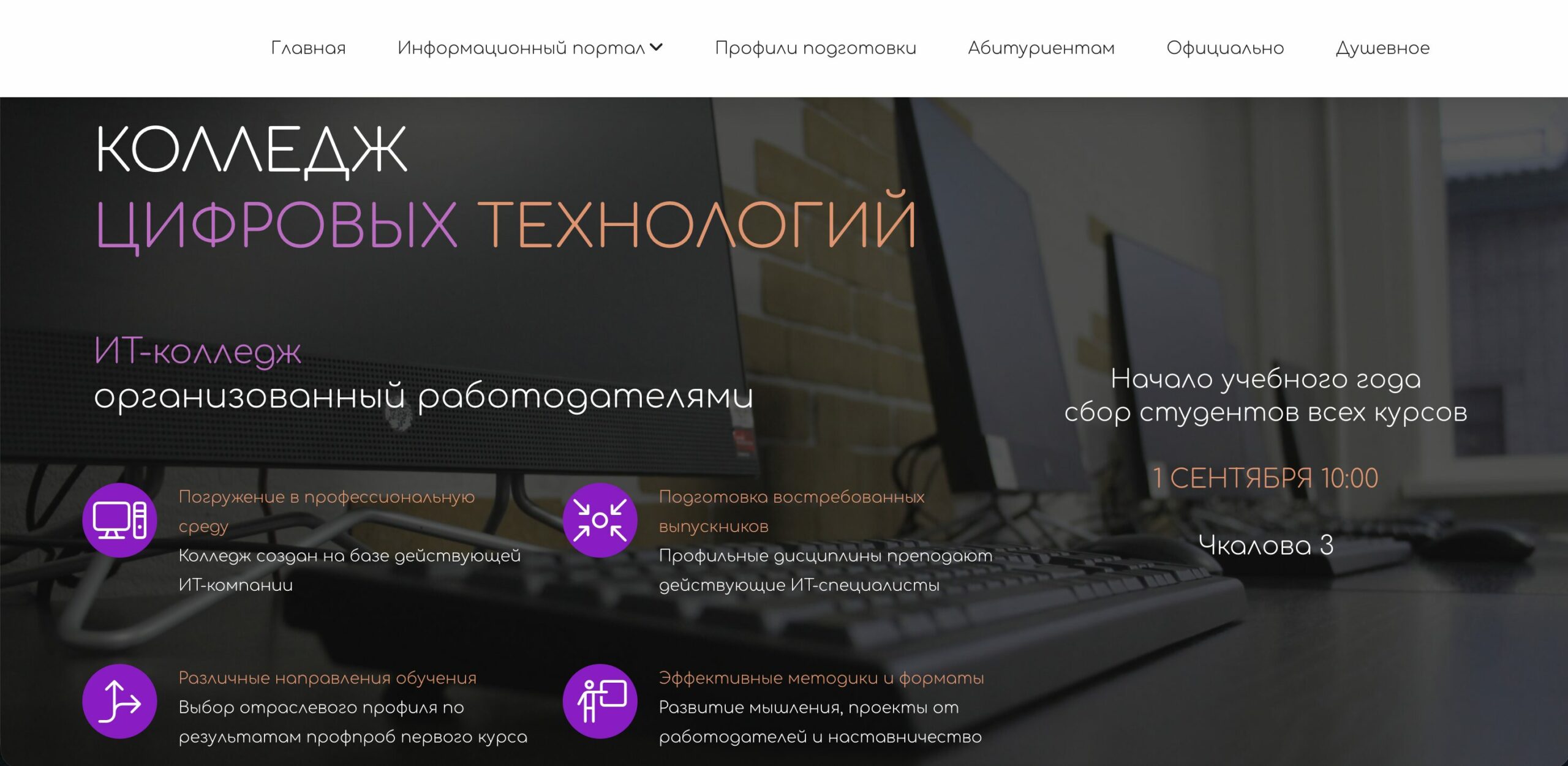 Колледж цифровых технологий — самое передовое образовательное учреждение в Екатеринбурге, и, выбирая его, можно быть уверенным, что здесь готовят ИТ-специалистов, соответствующих новым вызовам времени.