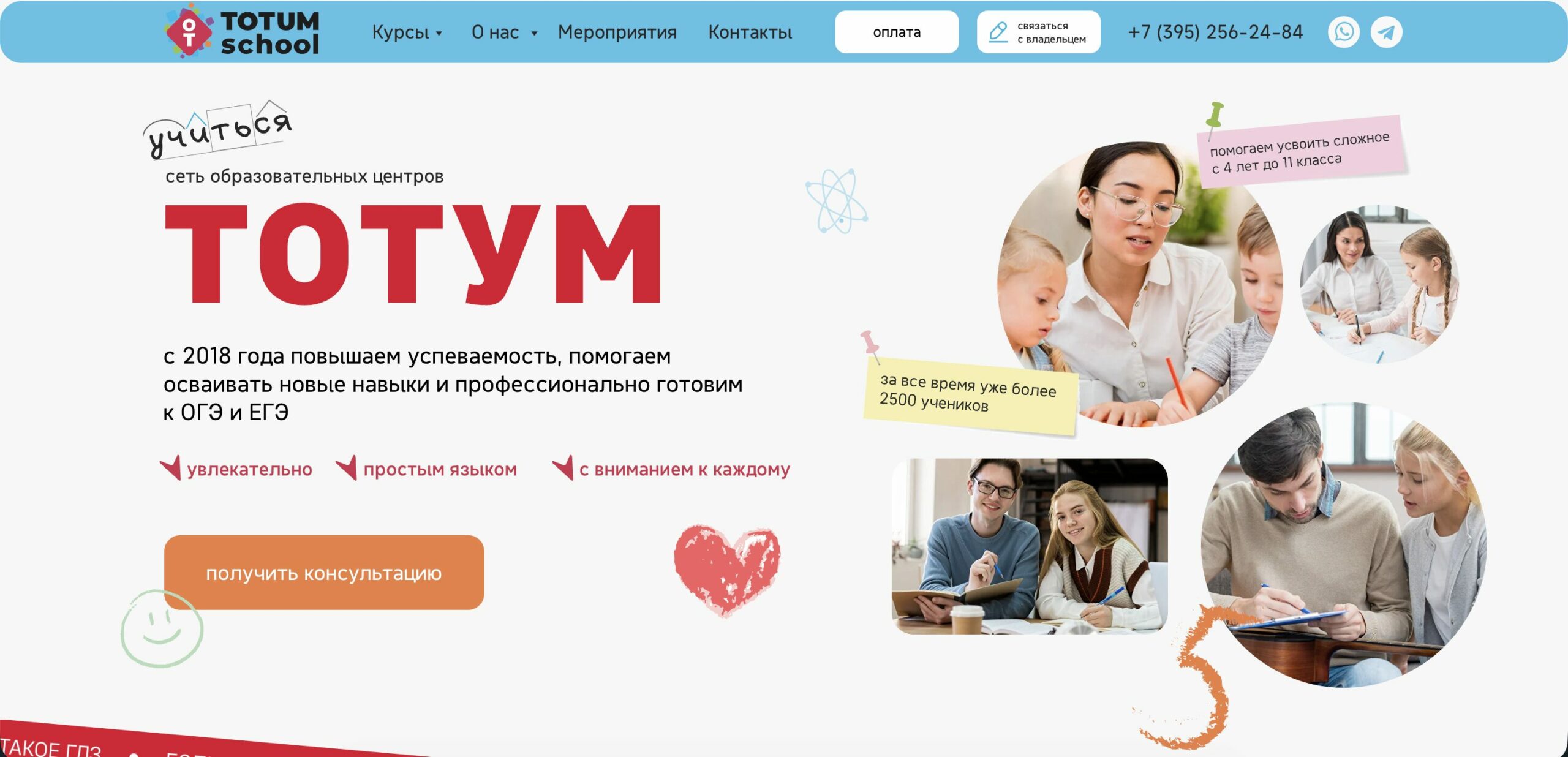 В «Тотум School» можно подтянуть знания по школьной программе, подготовиться к олимпиадам и экзаменам. Для дошкольников есть курсы раннего развития, ментальная арифметика и занятия с логопедом.